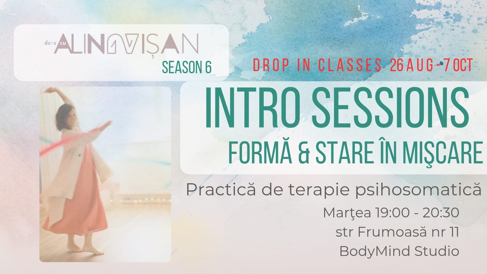 Seri de marţi cu 90 de minute de terapie în mişcare şi orientată către corp. Şedinţe introductive în vederea înscrierii la modulul de toamnă Formă și Stare în Mișcare® şi la propunerile de practici ale proiectului Dans cu Alina Vişan sezon 7 cu start pe 17 octombrie.